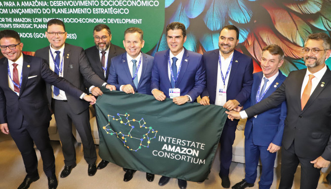 Na Conferência das Nações Unidas sobre Mudanças Climáticas de 2023 (COP-28), o governador do Tocantins, Wanderlei Barbosa, participou, nesta segunda-feira, 4, do painel Transição econômica para a Amazônia: desenvolvimento socioeconômico de baixas emissões, com lançamento do planejamento estratégico do Consórcio Amazônia Legal. Acompanhado de representantes dos nove estados que integram o consórcio, Wanderlei Barbosa falou sobre a transição da economia de baixo carbono, a produção agrícola sustentável, as políticas públicas adotadas pelo Tocantins para a preservação ambiental e reforçou a importância do trabalho cooperativo desenvolvido pelo Consórcio.